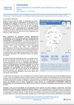 Colombia: Nueva afectación por Inundación a gran escala en la subregión de La Mojana - Flash Update No. 1 (13/07/2022)